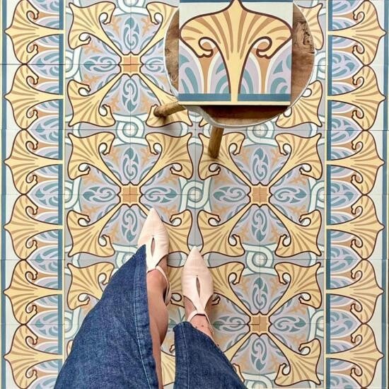 Gebruikte kleuren in de tegel; 1.3 Ivory, 2.1 Raffia, 2.3 Lime Stone, 3.1 Misty Pink, 6.11 Lagoon Green, 8.4 Sand, 9.2 Chesnut