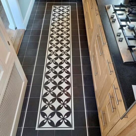 Gebruikte kleuren in de tegel; 1.0 Snow White, 8.1 Black